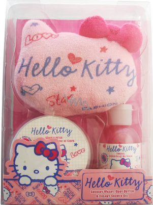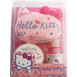 Kazeta Hello Kitty obsahuje: koupelová žínka tělové máslo 50 ml sprchový gel 50 ml