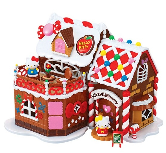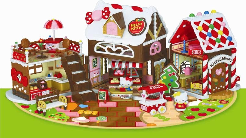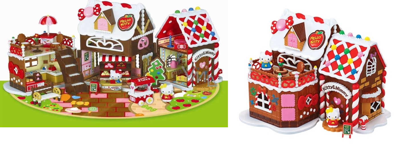 Hello Kitty a její sestřička vás zvou do svého světa. Užijte si kopec zábavy s úžasnými sadami, které můžete mít všude s sebou. Tato perníková chaloupka, vypadá jako z opravdové pohádky. Hello Kitty a její sestřička tady mají krásné bydlení a také obchod se zákusky!