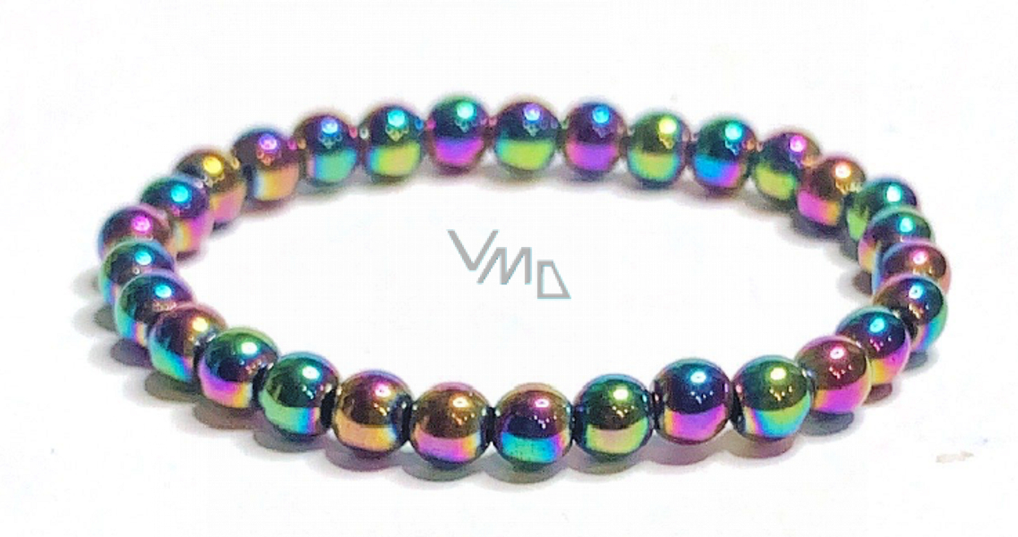 Bransoletka hematytu kolorowa elastyczna naturalny kamień, kuleczka 6 mm / 16 - 17 cm, kamień zdrowej krwi