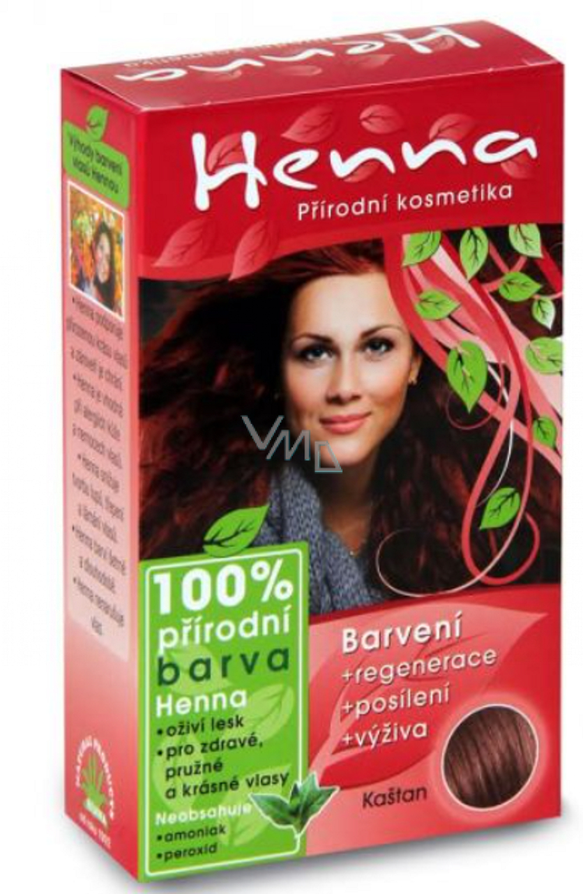 Henna to 100% naturalna farba do włosów, która ma poza działaniem farbującym również regeneracyjne i lecznicze właściwości. Henna dostarcza włosom niezbędne witaminy, włosy dzięki jej zastosowaniu zyskują wysoki blask. Ponadto Henna zapobiega powstawaniu łupieżu i jest bardzo odpowiednia w przypadku alergii skórnych i chorób włosów. Aplikacja farby nie wiąże się z żadnym ryzykiem zdrowotnym i jest zatem doskonałą alternatywą dla chemicznych farb.