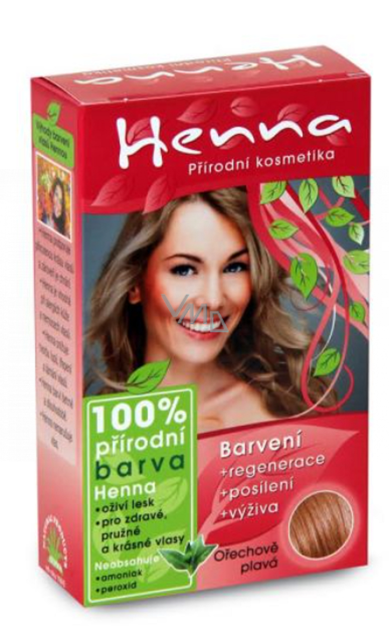 Henna jako naturalny barwnik bardzo naturalnie łączy się z pierwotnym kolorem włosów, a złoty odcień Henny pięknie przebija przez Twoje włosy. Zaletą Henny jest, że pod wpływem światła stopniowo blednie, więc na Twoich włosach nigdy nie będzie wyraźnie widocznego przejścia między włosami farbowanymi a już odrośniętymi.