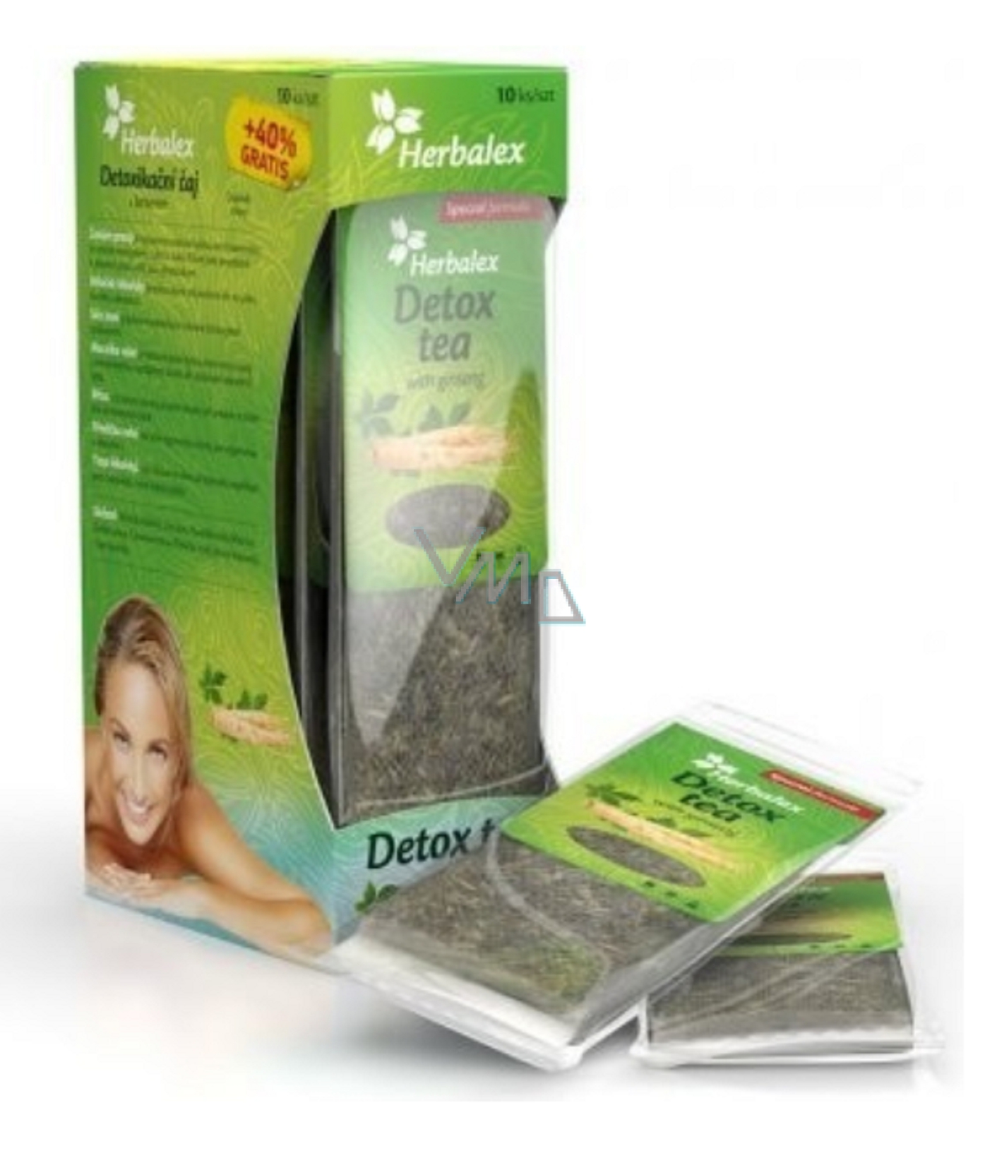 Herbalex detoxikační bylinný čaj s ženšenem. Čistící čaj, doplněk stravy podporující látkovou výměnu, odplavuje nežádoucí metabolity z lidského těla.