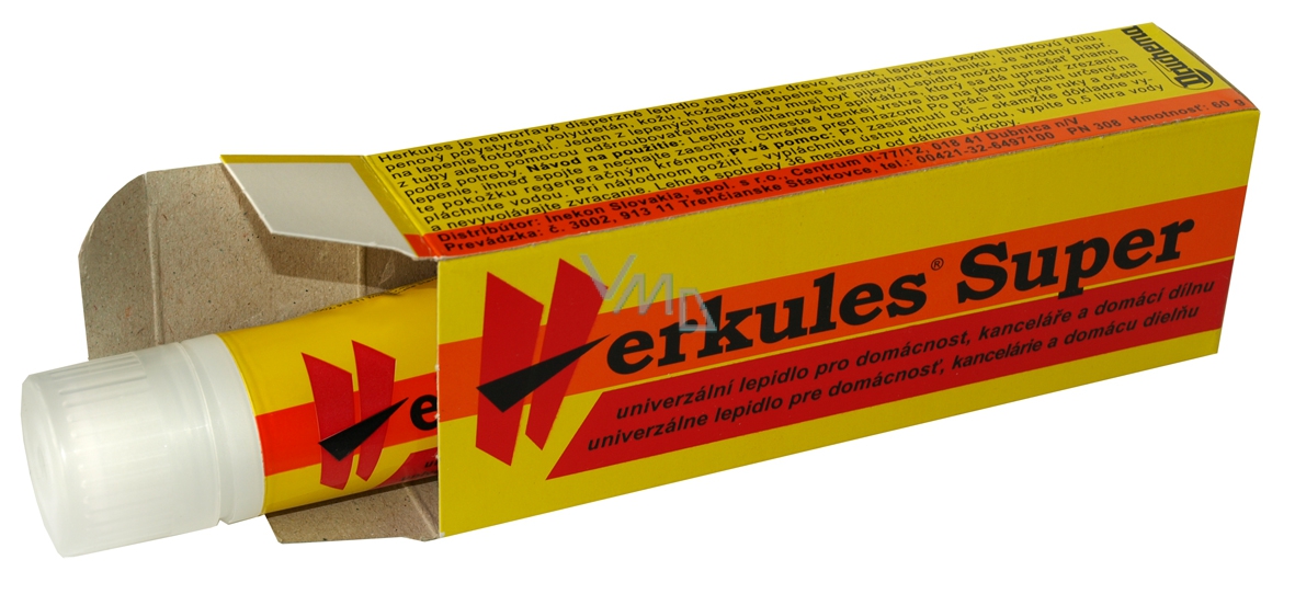 Herkules to niepalny klej dyspersyjny do papieru, drewna, korka, tektury, tkanin, folii aluminiowej, styropianu, poliuretanu, gąbki, skóry i ceramiki, która nie jest narażona na działanie wysokich temperatur. Jeden z klejonych materiałów musi być chłonny. Klej można nanosić bezpośrednio z tuby lub za pomocą nakładki z gąbki, która może być dostosowana poprzez przycięcie według potrzeb.