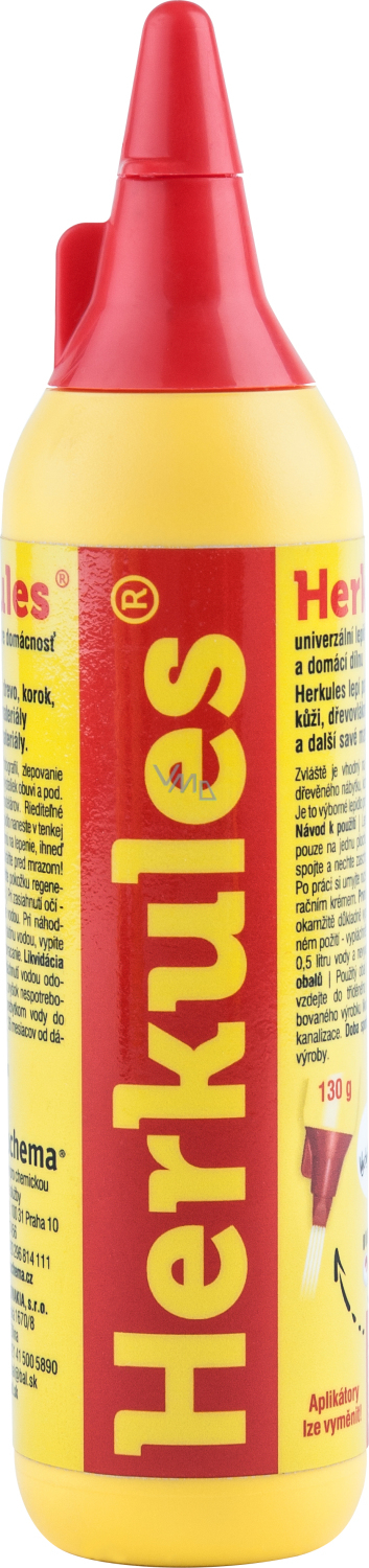 Uniwersalny klej dyspersyjny do domu, szkoły, biura i domowego warsztatu. Herkules klei papier, drewno, korek, skórę, materiały lignocelulozowe i inne materiały chłonące. Szczególnie nadaje się do klejenia zdjęć, sklejania mebli drewnianych, skórzanych wkładek do obuwia itp.