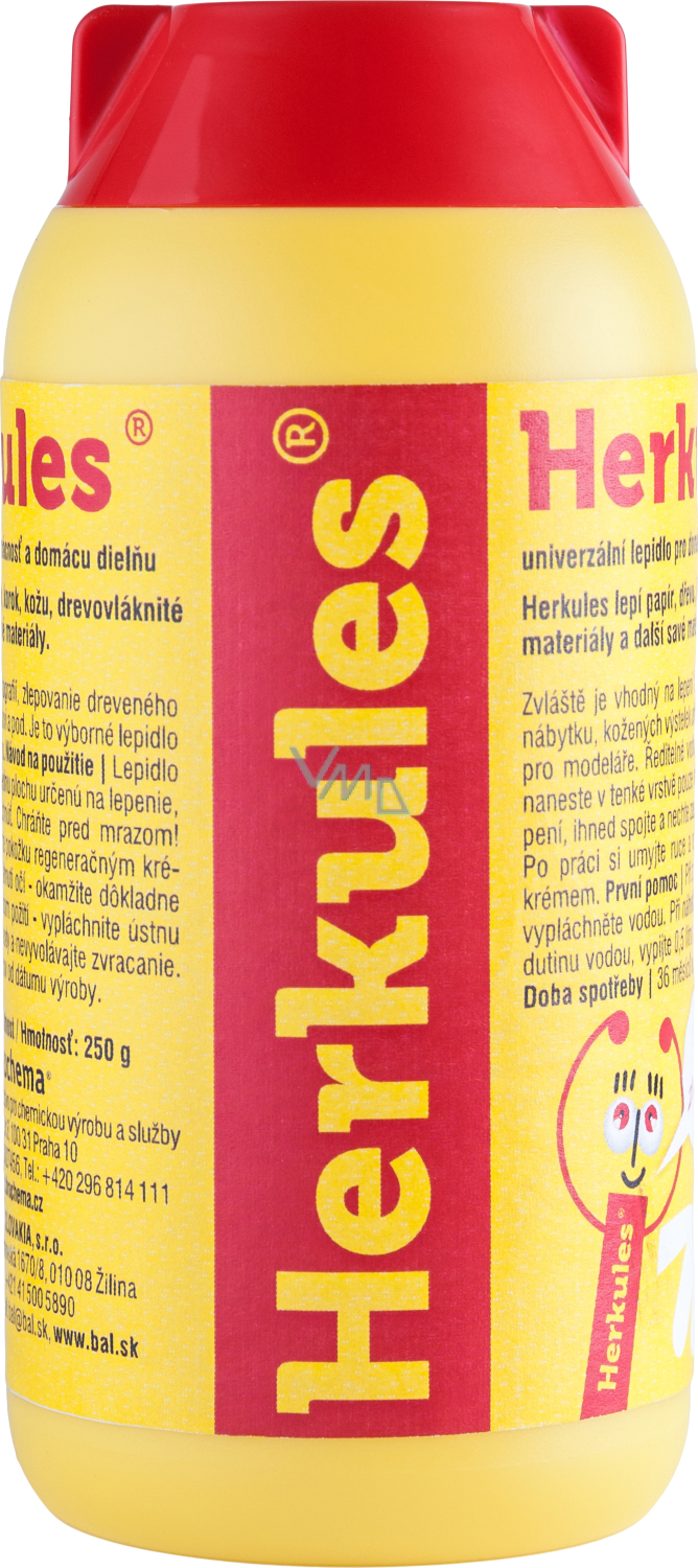 Uniwersalny klej dyspersyjny do domu, szkoły, biura i domowego warsztatu. Herkules klei papier, drewno, korek, skórę, materiały wiórowe i inne materiały chłonące. Szczególnie nadaje się do klejenia zdjęć, łączenia mebli drewnianych, skórzanych wkładek obuwia itp.