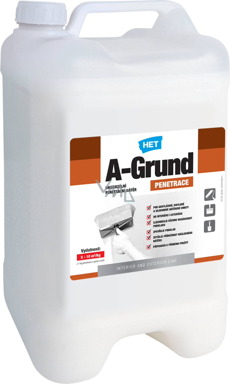 - gruntująca powłoka penetracyjna jest wykonywana przy użyciu preparatu A-GRUND w jednej warstwie i pozostawiana na 24 godziny do wyschnięcia. Ewentualne plamy po przeciekającej wodzie, rdzy, sadzy, barwnikach anilinowych lub nikotynie należy pokryć powłoką izolacyjną I-GRUND lub w przypadku większej intensywności farbą HETLINE IZOL.