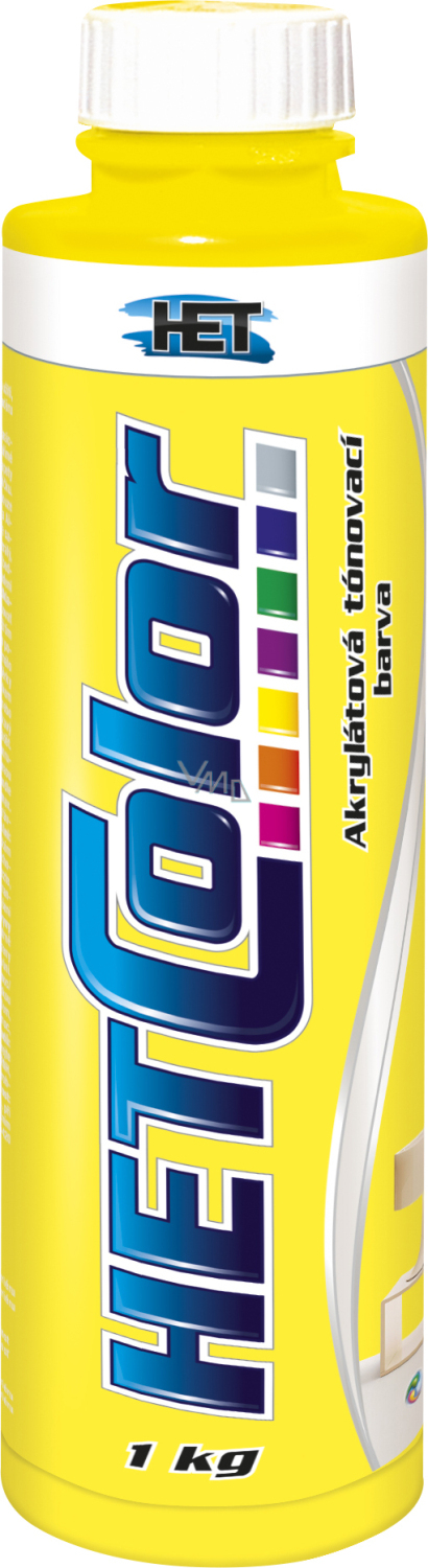 Hetcolor akrylátová tónovací barva k tónování fasádních a vnitřních disperzních i klasických nátěrů nebo k přímé aplikaci. Disperzní tónovací matná barva pro vnitřní i venkovní použití. K tónování vodou-ředitelných disperzních i klasických barev určených k nátěrům stěn a stropů nebo k přímé aplikaci na vnitřní i venkovní vápenné, vápenocementové omítky, omítky s akrylátovým pojivem, zdivo apod. Lze použít i k dekoračním nátěrům svislých betonových konstrukcí. V případě podkladů nevystavených působení srážkové vody a aplikací v interiéru lze barvu použít k dekorativním nátěrům dřevotřískových, dřevovláknitých, sádrokartonových či sádrovláknitých desek, sádrových nebo sádrovápenných omítek, papíru, tapet atd.