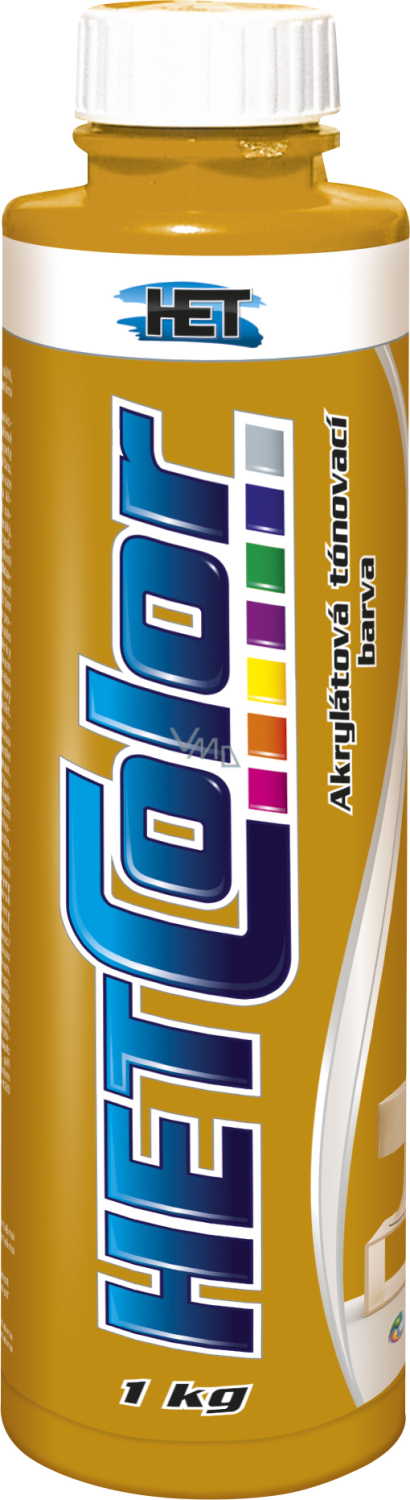 Hetcolor akrylátová tónovací barva k tónování fasádních a vnitřních disperzních i klasických nátěrů nebo k přímé aplikaci. Disperzní tónovací matná barva pro vnitřní i venkovní použití. K tónování vodou-ředitelných disperzních i klasických barev určených k nátěrům stěn a stropů nebo k přímé aplikaci na vnitřní i venkovní vápenné, vápenocementové omítky, omítky s akrylátovým pojivem, zdivo apod. Lze použít i k dekoračním nátěrům svislých betonových konstrukcí. V případě podkladů nevystavených působení srážkové vody a aplikací v interiéru lze barvu použít k dekorativním nátěrům dřevotřískových, dřevovláknitých, sádrokartonových či sádrovláknitých desek, sádrových nebo sádrovápenných omítek, papíru, tapet atd.