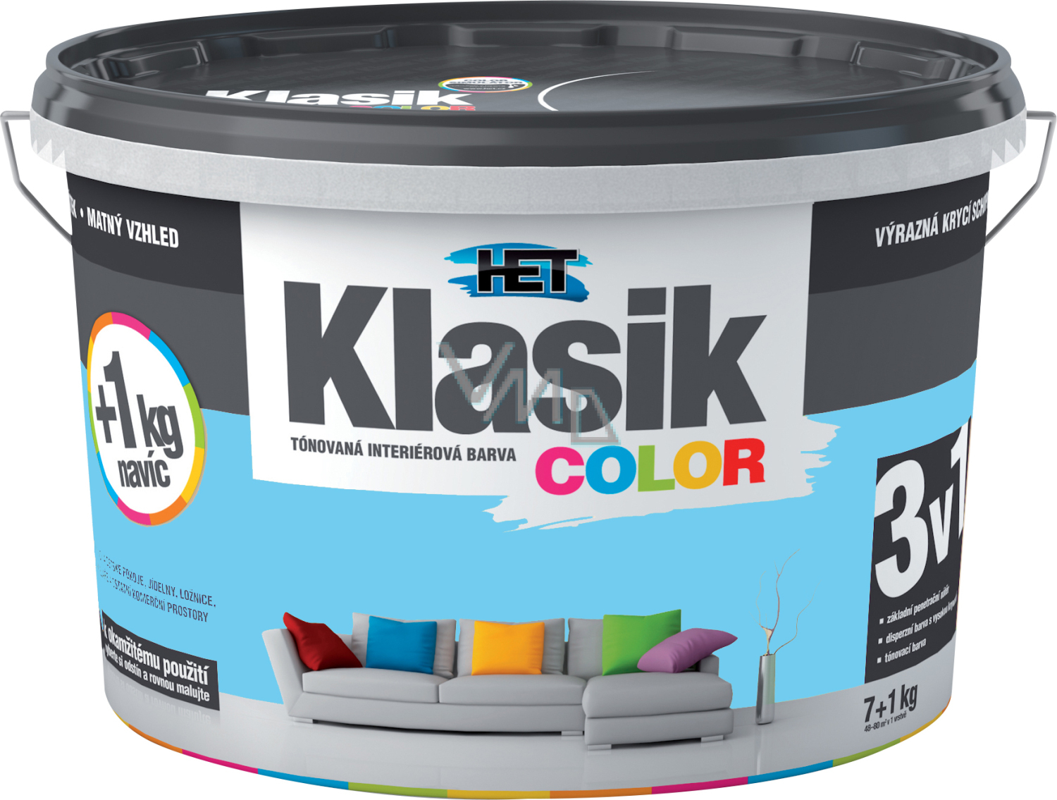 Het Klasik Color farba malarska tonowana dyspersyjna odporna na zmywanie, którą polecamy do pomieszczeń mieszkalnych i komercyjnych, pokoi dziecięcych, jadalni, korytarzy, biur, przestrzeni handlowych. Odpowiednia na powłoki do tynków mineralnych, gipsowych i renowacyjnych, murów, paneli betonowych i monolitów, płyt gipsowo-kartonowych, gipsowo-włóknowych i drewnopochodnych, tapet papierowych do tego przeznaczonych, tapet ze szkła włóknistego itd.