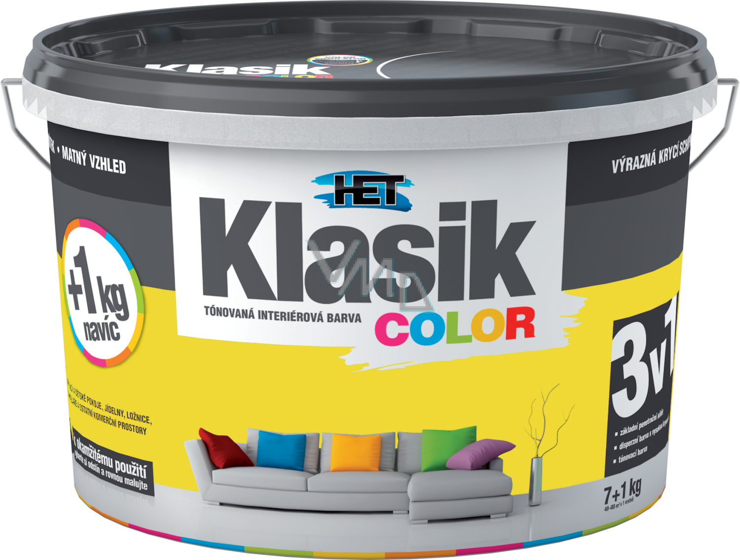 Het Klasic Color farba malarska wodorozcieńczalna odporna na ścieranie którą zalecamy do przestrzeni mieszkalnych i komercyjnych, pokojów dziecięcych, jadalni, korytarzy, biur, przestrzeni sprzedażowych. Odpowiednia do malowania tynków mineralnych, gipsowych i sanacyjnych, murów, paneli betonowych i monolitycznych, płyt gipsowo-kartonowych, gipsowo-włóknistych i drewnowłóknistych, tapet papierowych do tego przeznaczonych, tapet ze szklanych włókien itp.