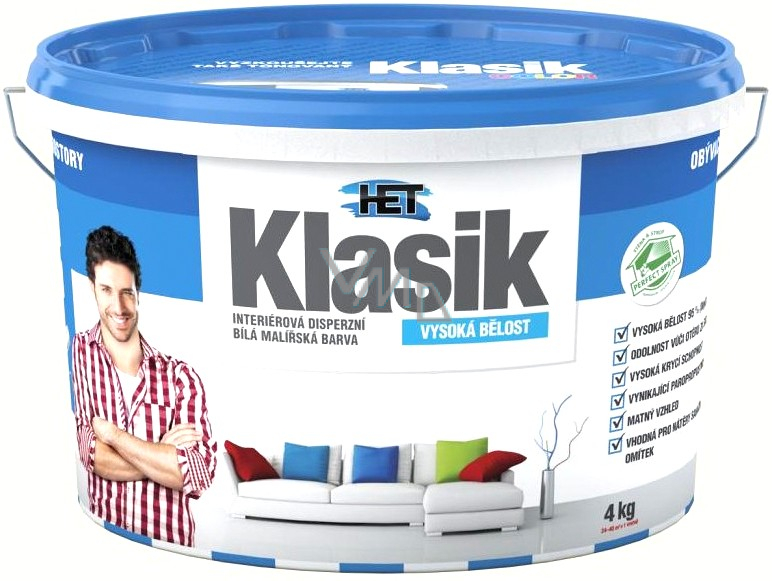 bílý, tónování je možno provádět tónovacími barvami Hetcolor nebo tónovacími přípravky Kolorka (max. do poměru 1:5 dílům barvy), případně mícháním s výrobkem Klasik Color.