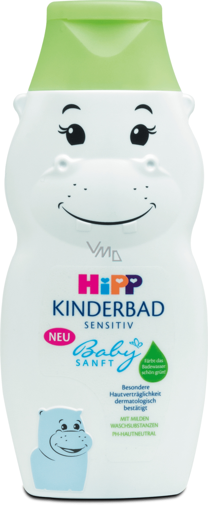 Hipp Babysanft kąpiel dziecięca Hipopotam dzięki połączeniu zielonej wody i delikatnej bazy do codziennej kąpieli. Jest szczególnie odpowiednia dla delikatnej, wrażliwej skóry małych dzieci. Skórę myje bardzo łagodnie i zachowuje jej naturalny kwaśny płaszcz.