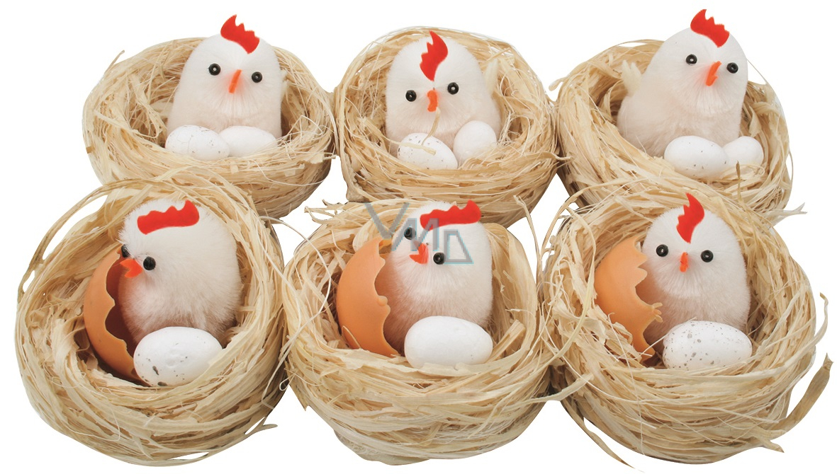 Hnízda s kuřátkem a vejcem 5,5 cm 6 kusů v krabičce