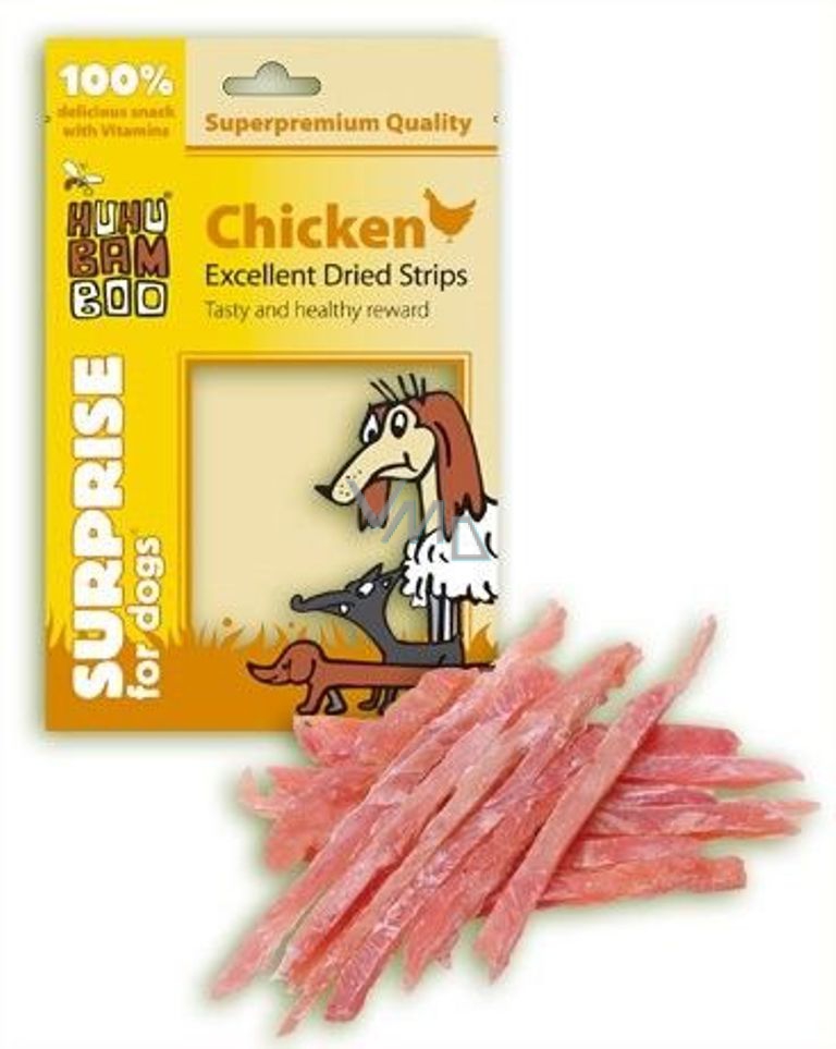 Huhubamboo Excellent Sušené kuřecí proužky přírodní masová pochoutka pro psy 75 g