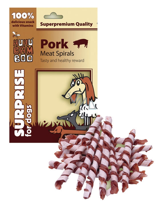 Huhubamboo Vepřové spirálky přírodní masová pochoutka pro psy 75 g
