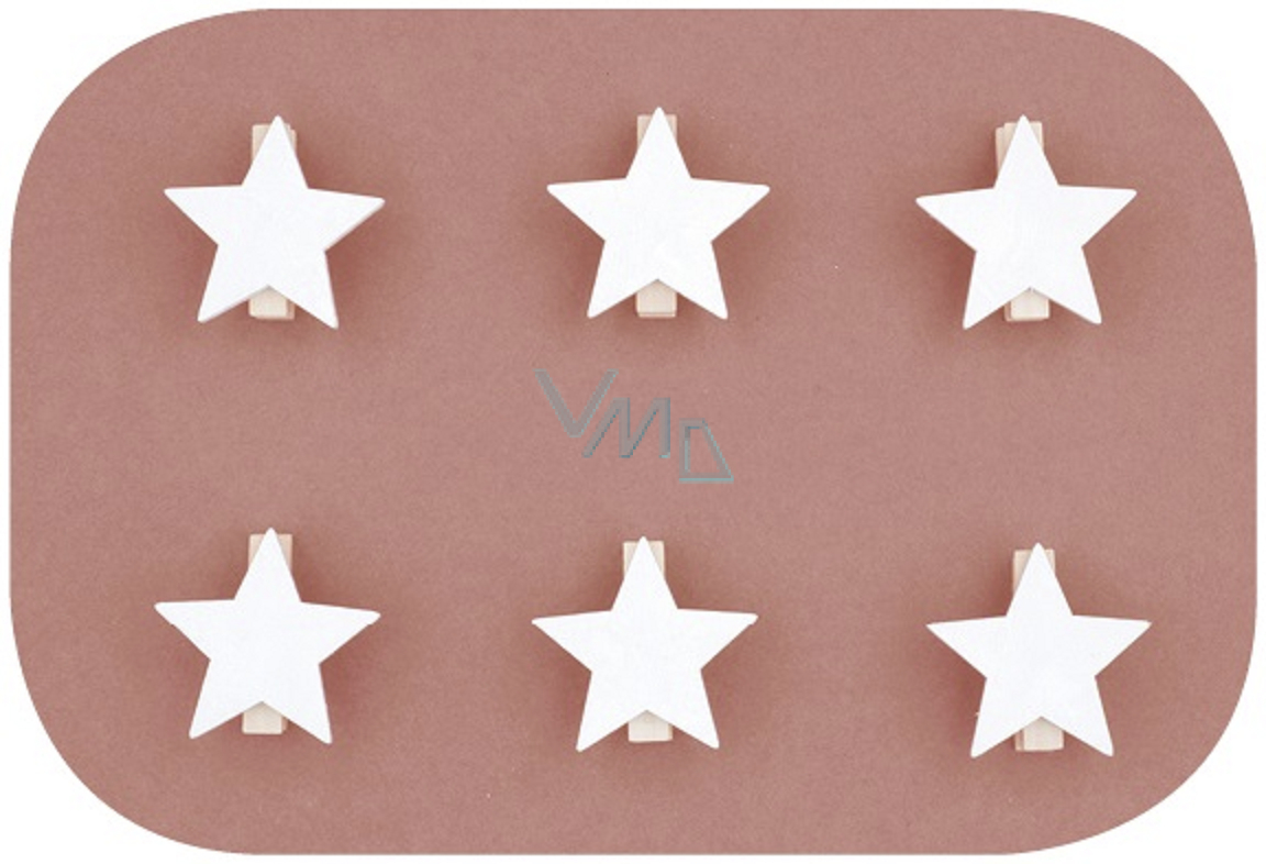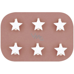 Biała drewniana gwiazdka 4 cm na kółeczku 6 sztuk