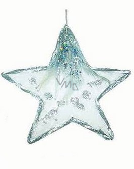 Měsíc, stromek, hvězda stříbrná s peříčkem a flitry 20 cm, cena za 1 kus