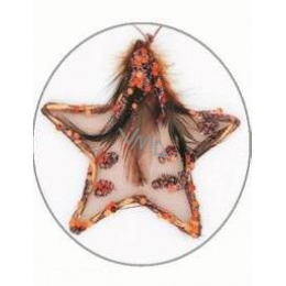 Hvězdička s peříčkem a flitry MĚDĚNÁ 11 cm