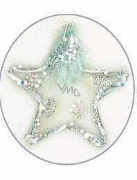 Hvězdička s peříčkem a flitry STŘÍBRNÁ 11 cm