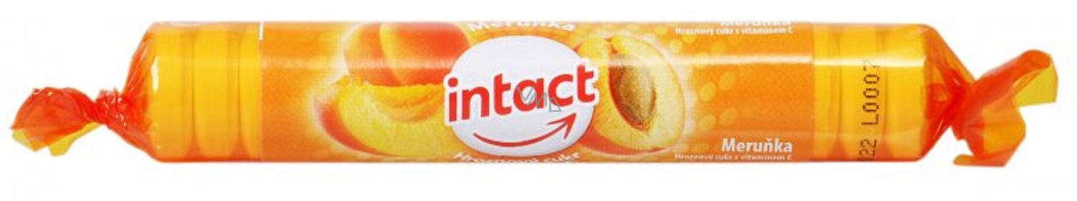Doplněk stravy INTACT hroznový cukr s vitamínem C jsou na jazyku rychle rozpustné pastilky s příchutí Meruňky. Jedná se o rychlý zdroj energie a cukrů při náročnějších sportovních výkonech.