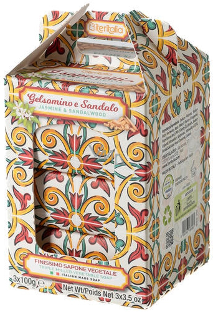 Iteritalia Jaśmin i drewno sandałowe włoskiego naturalnego mydła toaletowego 3 x 100 g, świąteczny zestaw prezentowy
