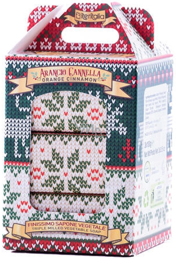 Iteritalia Pomarańcza i cynamon włoskie naturalne mydło toaletowe 3 x 100 g, zestaw prezentowy na święta