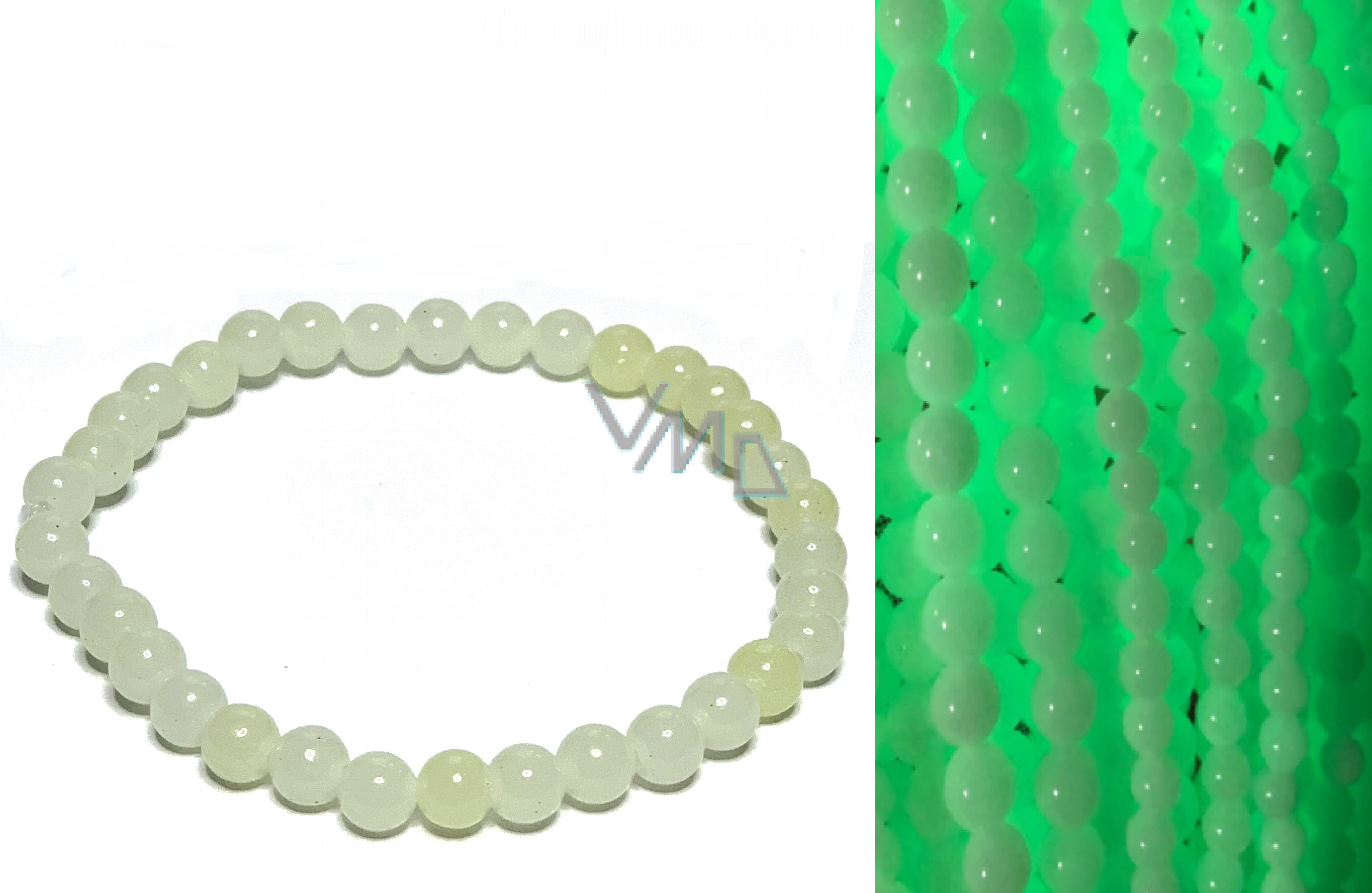 Jade Luminois Light Fosforeskujący, świeci w ciemności, bransoletka elastyczna naturalny kamień, kuleczka 6 mm / 16 - 17 cm86.92 PLN