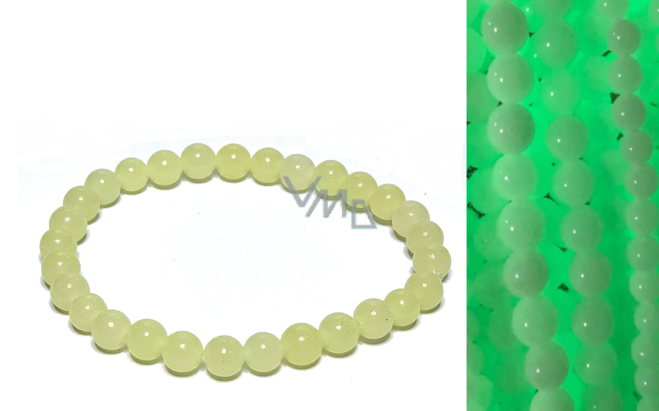 Jade Luminois Light Fosforeskujący, żółte światło w ciemności, bransoletka elastyczna naturalny kamień, kuleczka 6 mm / 16 - 17 cm