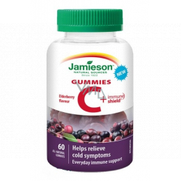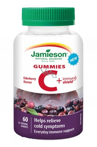Jamieson Vitamin C + Immune Shield Gummies Černý bez želatinové pastilky posilující imunitu, doplněk stravy 60 tablet