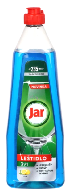 Jar leštidlo do myčky s vůní citronu zajišťuje lesklejší, sušší a dokonale čisté nádobí. Díky snadnému dávkovacímu uzávěru také pomáhá minimalizovat rozlití a nepořádek při doplňování. Jeho množství vydrží až na 235 umytí. Dosáhněte nejlepšího oslnivého lesku a čistoty díky leštidlu do myčky 3v1 od značky Jar.