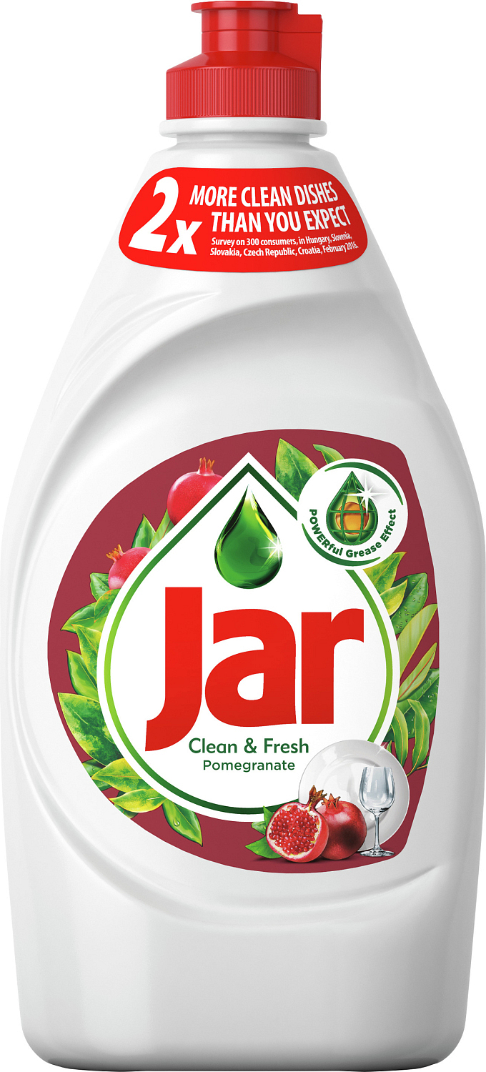 Jar do naczyń jest skoncentrowanym środkiem do ręcznego mycia naczyń o zapachu granatowego jabłka. Dzięki skutecznemu składowi wystarczy mała ilość preparatu na dużą ilość naczyń. Ma długotrwałą aktywną pianę. Łatwo radzi sobie z zanieczyszczeniami i tłuszczem.