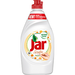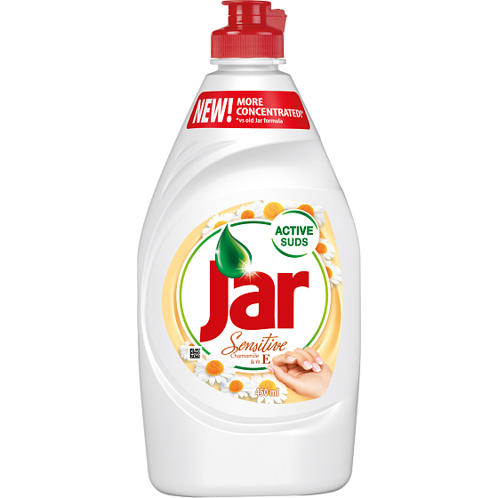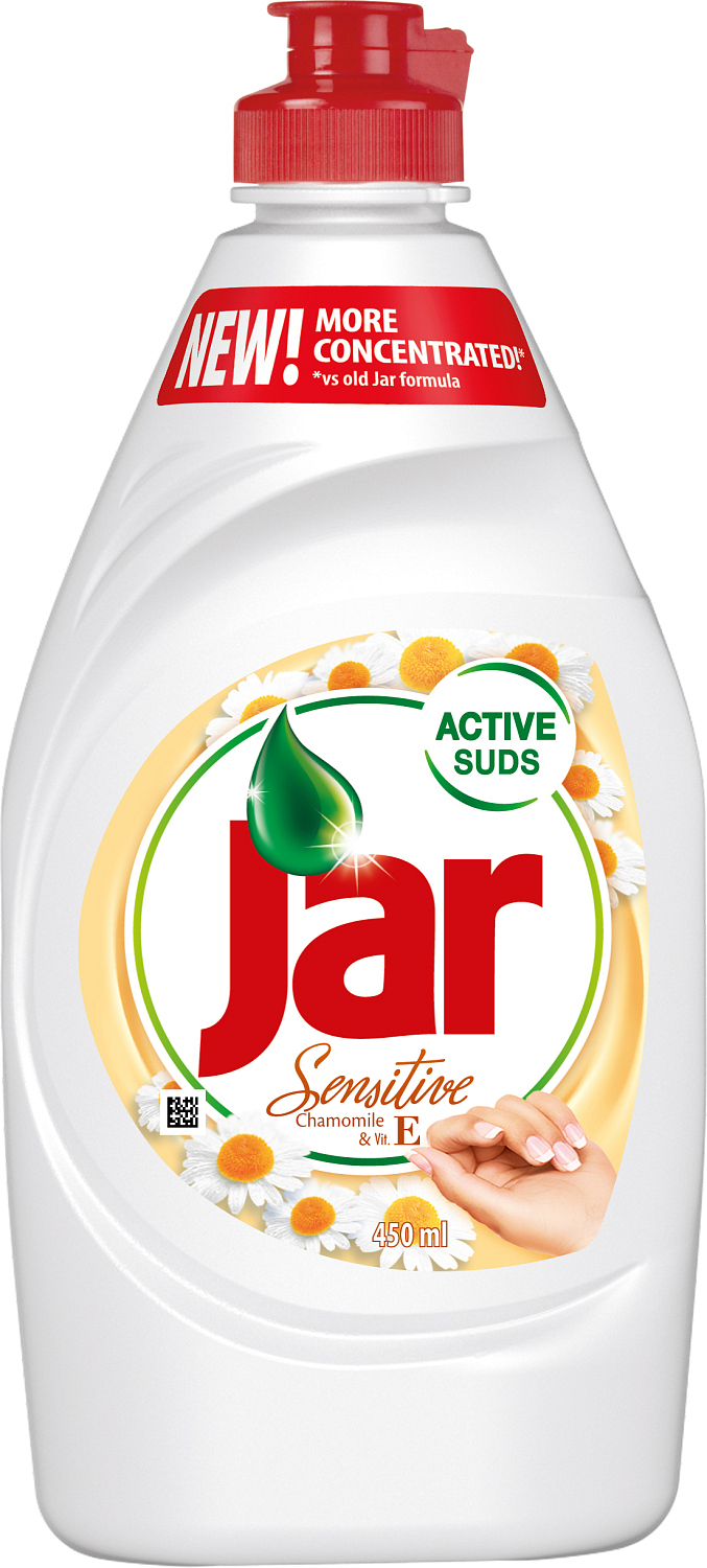 Ma trwałą aktywną pianę. Łatwo poradzi sobie ze zabrudzeniami i tłuszczem. Odpowiedni do codziennego mycia naczyń – szklanek, porcelany, talerzy, sztućców, garnków, patelni i innych. Ma przyjemny zapach i jest łagodny dla rąk. Skuteczne składniki Jaru łatwo poradzą sobie z tłuszczem, a wszystko będzie czyste, nawet bez konieczności używania dużych sił. Jar jest skoncentrowany, więc jedna kropla wystarcza do umycia wielu naczyń. W formie rumianku z zawartością witaminy E.