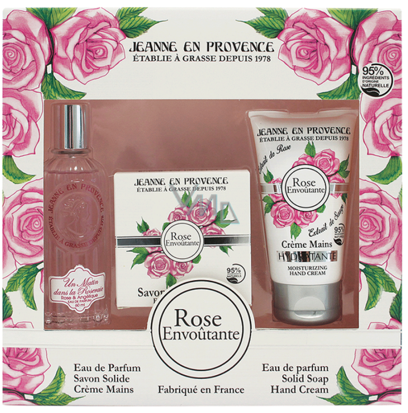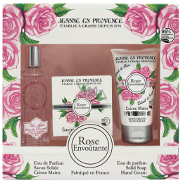 Jeanne en Provence Rose Envoutante - Podmanivá růže parfémová voda pro ženy 60 ml + tuhé toaletní mýdlo mýdlo 100 g + krém na ruce 75 g, kosmetická sada