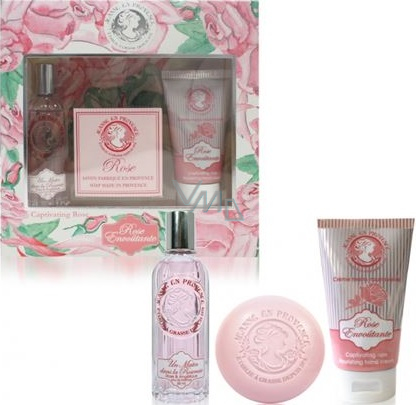 Jeanne en Provence Rose Envoutante - Podmanivá růže parfémovaná voda pro ženy 60 ml + tuhé toaletní mýdlo 100 g + krém na ruce 75 ml, dárková sada