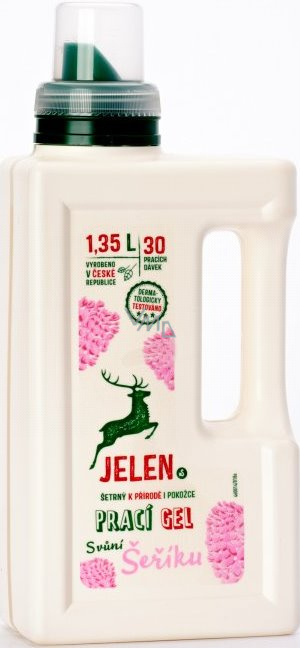 Każdego kwietnia u Jelenowej babci pachniał żel. Aby dom mógł pachnieć przez cały rok, Jelen przygotował żel do prania, dzięki któremu pranie będzie pięknie pachnące. Oszczędność dla skóry jest ponownie potwierdzona testami dermatologicznymi. Dodatkowo zawiera tensydy pochodzenia roślinnego, aby również dla przyrody była jak najłagodniejsza.