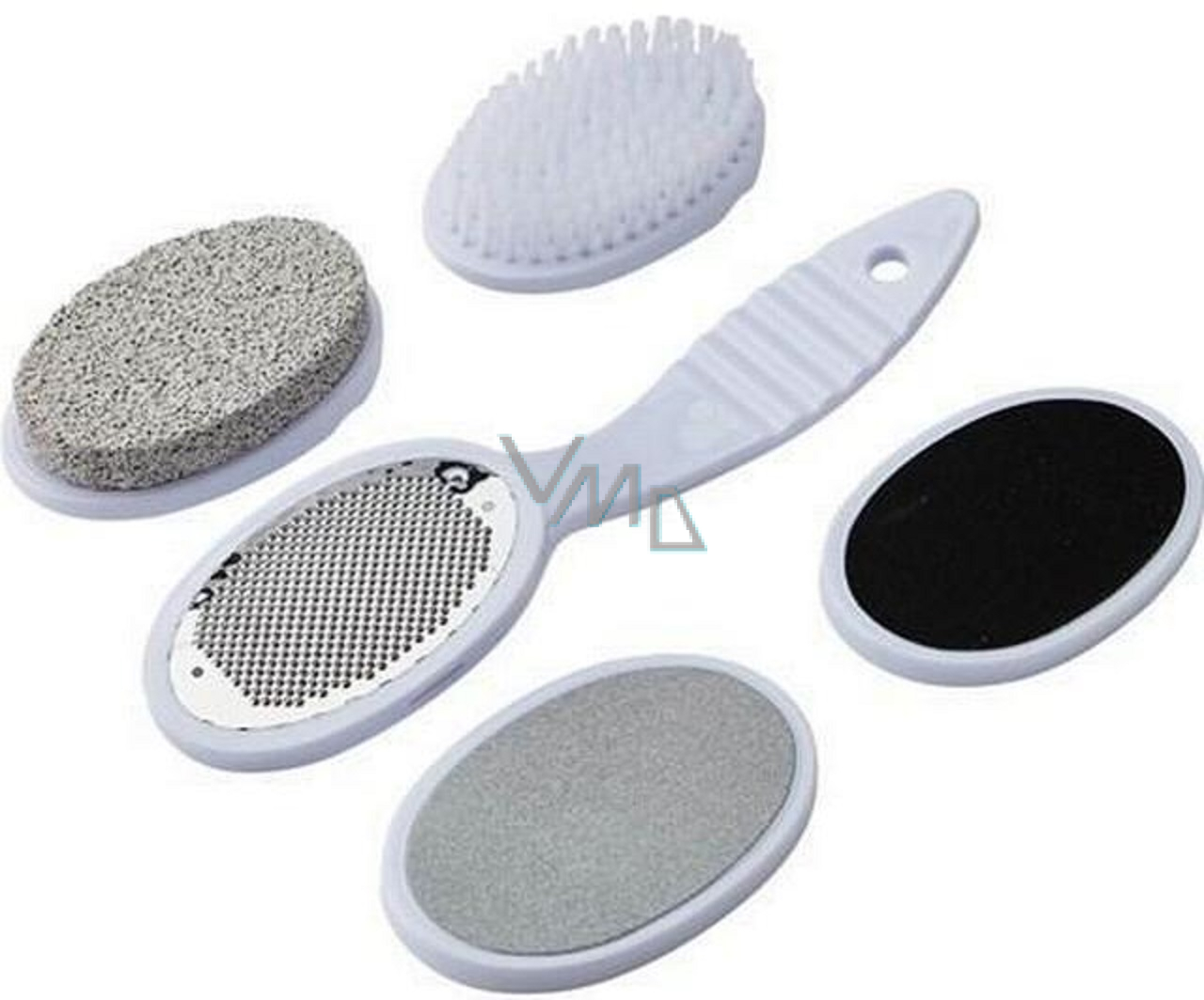 Zestaw, dzięki któremu pielęgnacja twoich stóp to prawdziwa przyjemność. Zestaw zawiera głowicę z wymiennymi końcówkami - pilnik ścierny, rasp, pumeks, szczotka i kamień ścierny.