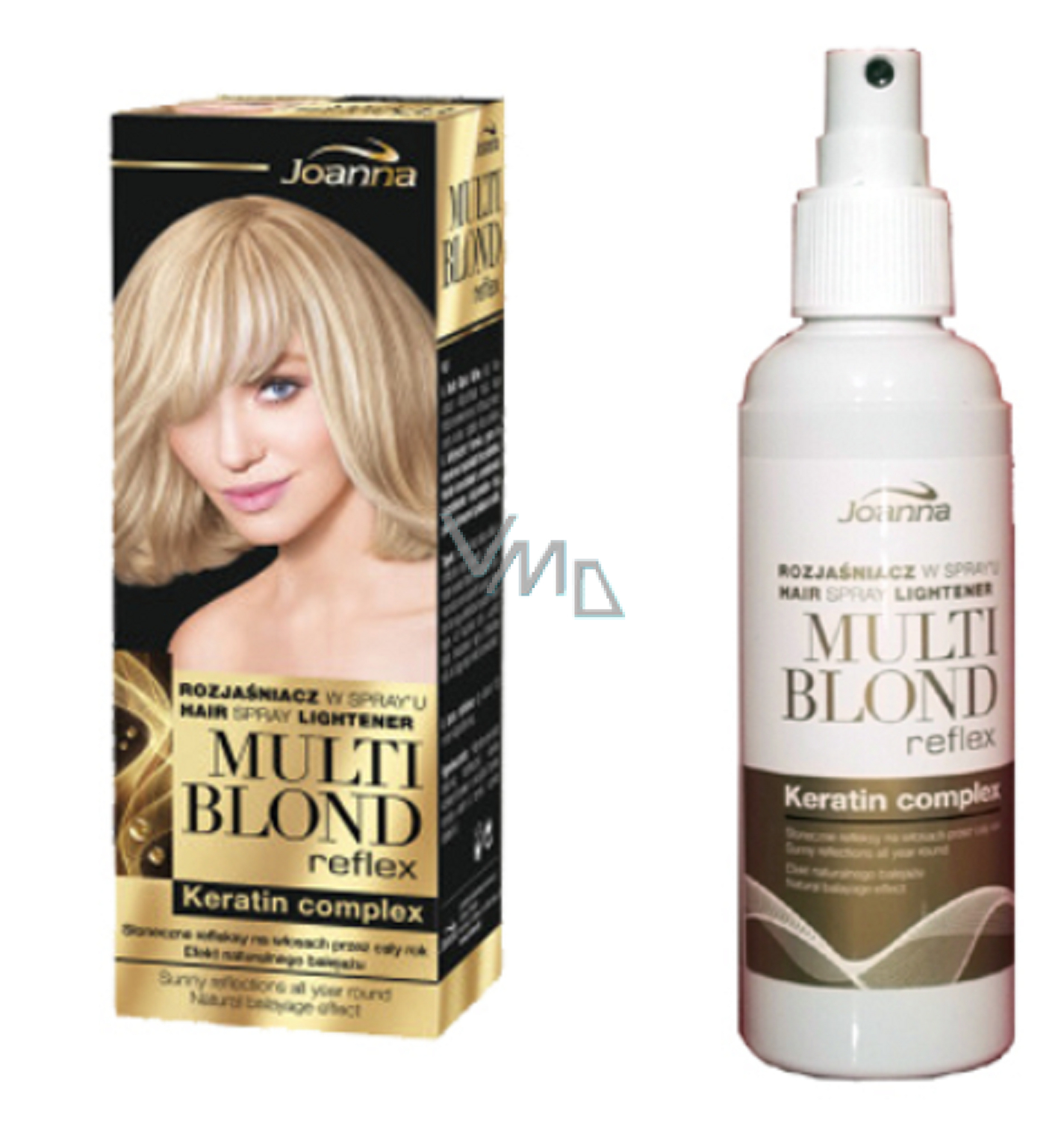 Rozjaňující sprej Multi Blond Reflex umożliwia osiągnięcie słonecznych refleksów blond włosów przez cały rok, nie tylko w czasie słonecznych letnich dni. Bardzo szybko rozjaśnia i rozświetla pasemka włosów i nadaje im efekt naturalnego letniego balejażu. Sprej umożliwia szybką i łatwą aplikację na włosy. Skład jest wzbogacony o keratynę i składniki odżywcze, dzięki którym pozostawia włosy miękkie, delikatne i przyjemne w dotyku.