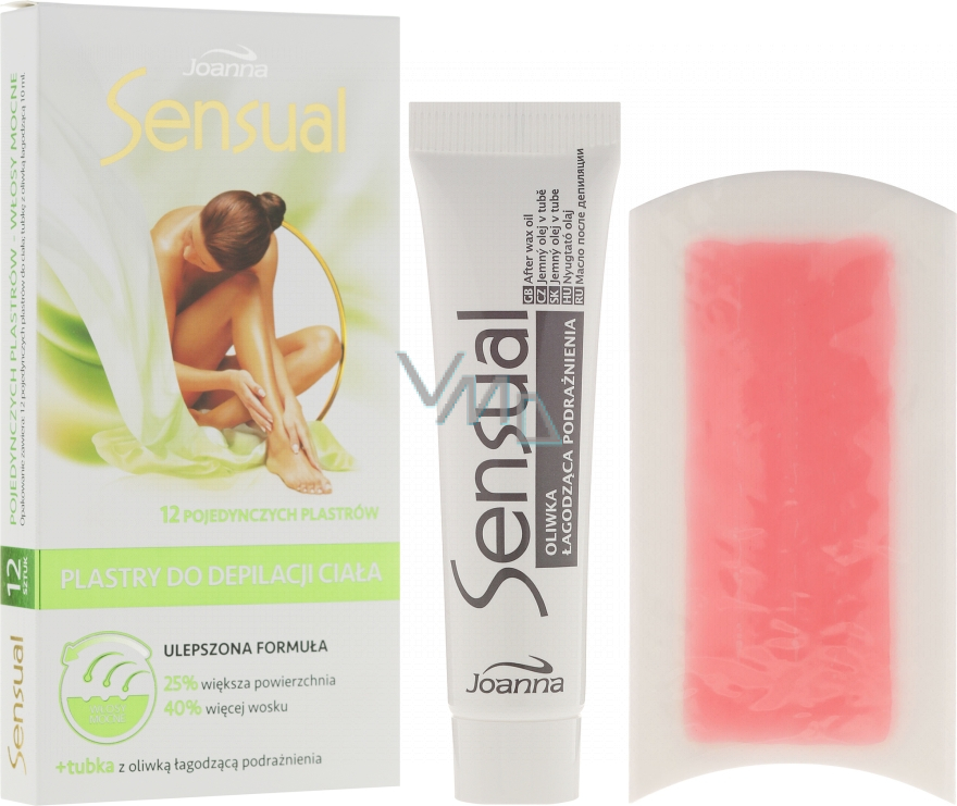 Joanna Sensual Dipilatory Body Stripes jsou navrženy speciálně pro odstranění chloupků zvýšené tvrdosti, takže snadno zvládnete depilaci. Vosková náplast musí být trochu zahřátá v rukou - a můžete zahájit postup. Výhodou takových proužků je, že každý z nich může být použit několikrát - dokud zachycuje a odstraňuje chloupky. Pro uklidnění podrážděné pleti po takto traumatickém zákroku, obsahuje souprava Joanna Sensual Dipilatory Body Strips také tubu se speciálním olejem na základě léčivého extraktu heřmánku. Nyní bude vaše pokožka vždy jemná a hladká - a žádné tvrdé chloupky!