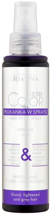 Srebrny płyn do włosów redukuje żółte odcienie szarych, blond i rozjaśnionych włosów, nadając im szary odcień. Łatwa aplikacja za pomocą spryskiwacza. Ułatwia rozczesywanie włosów i sprawia, że są one przyjemne w dotyku. Wygodny spryskiwacz ułatwia stosowanie preparatu.