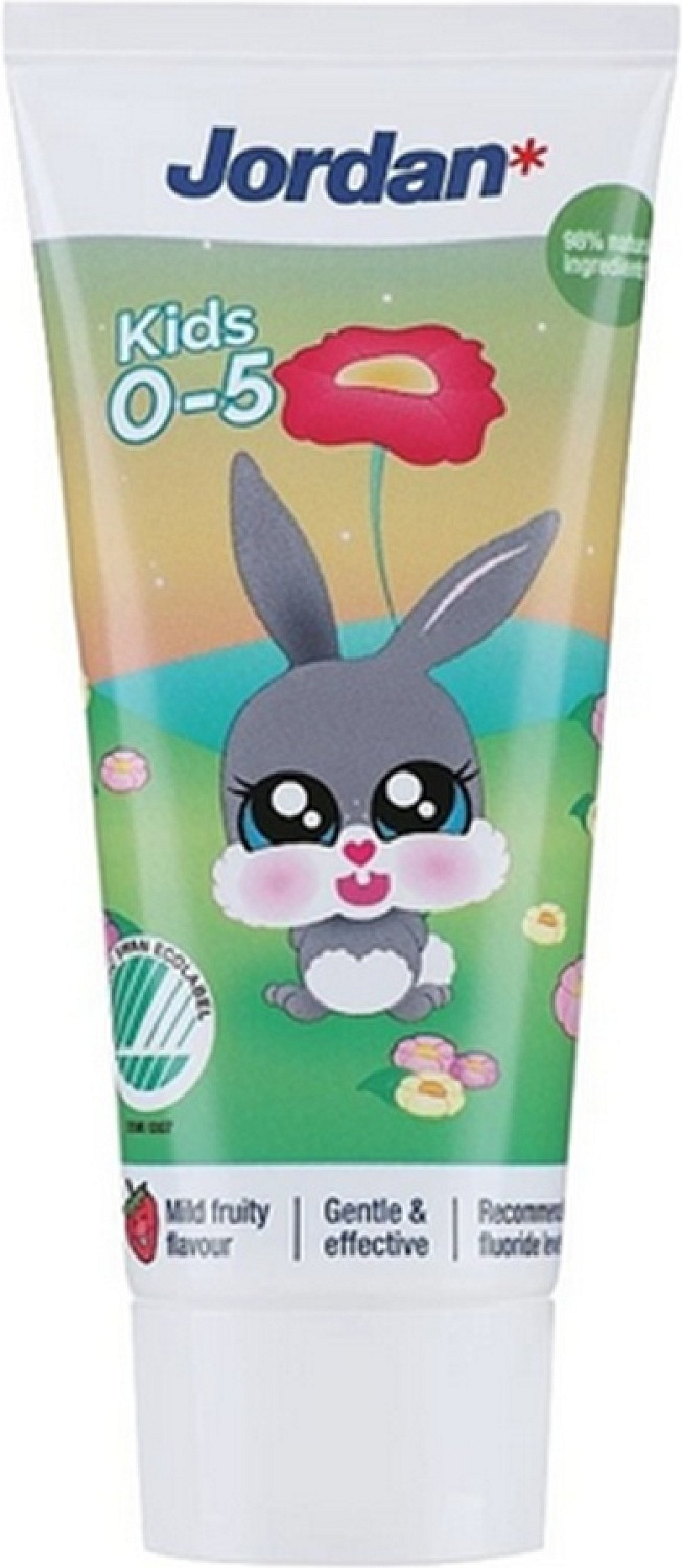 Jordan Kids to pasta do zębów przeznaczona dla dzieci od urodzenia do 5 roku życia. Zawiera 500 ppm fluoru, który pomaga chronić i wzmacniać mleczne zęby. Pasta ma delikatny owocowy smak, który ułatwia i umila dzieciom mycie zębów.