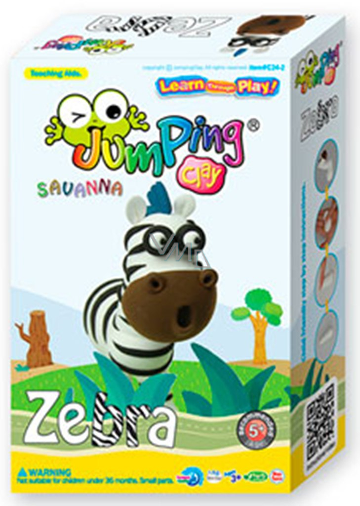 Jumping Clay Savana - Zebra samoschnoucí modelovací hmota 51 g + papírová maketa + tvořítko 5+