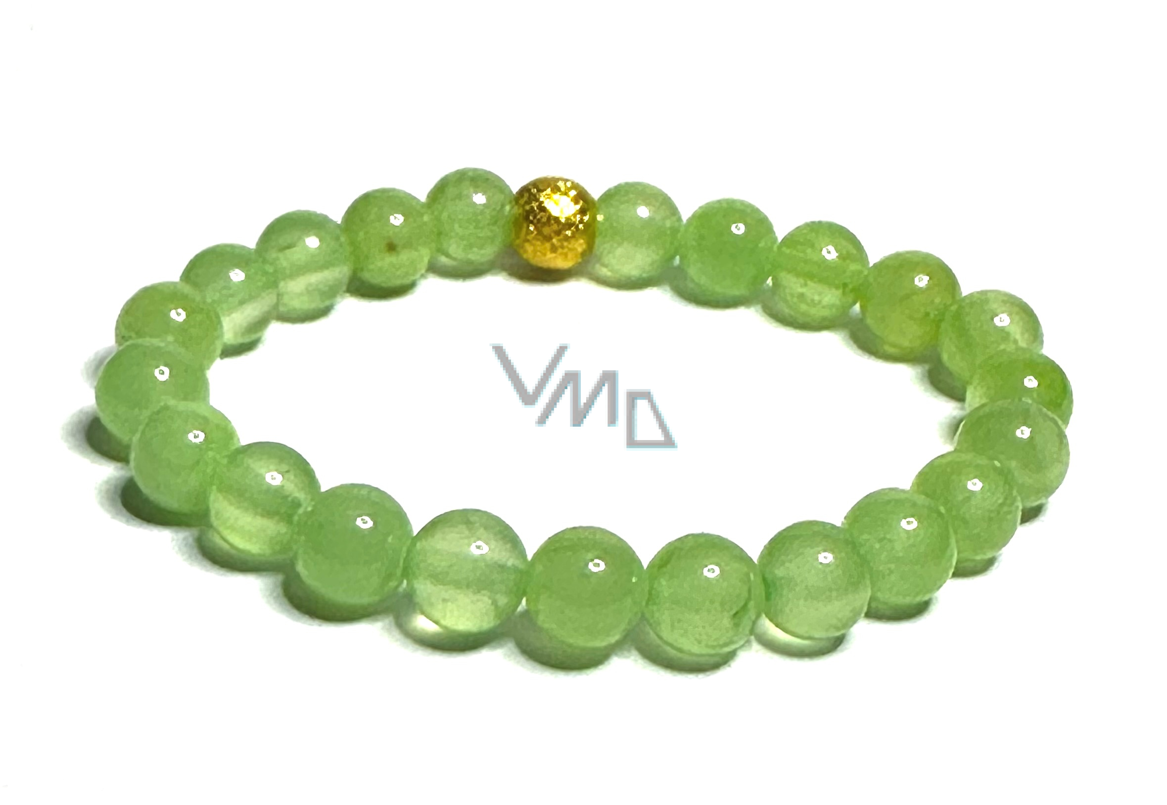 Kalcit zielony elastyczny naturalny kamień, kulka 8 mm / 16 - 17 cm, kamień intuicji