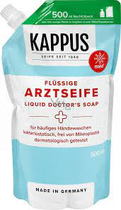 Kappus tekuté mýdlo bylo vyvinuto speciálně pro lékaře, ošetřující personál a spotřebitele, kteří se často myjí. Jemně parfémovaný a silně promaštěný čistící přípravek je ideální pro namáhanou, citlivou a silně namáhanou pokožku. Navíc díky praktickému doplňovacímu sáčku ušetříte za balení a dávkovač mýdla můžete doplňovat individuálně. Pro dobře udržovanou a hygienicky čistou pokožku!