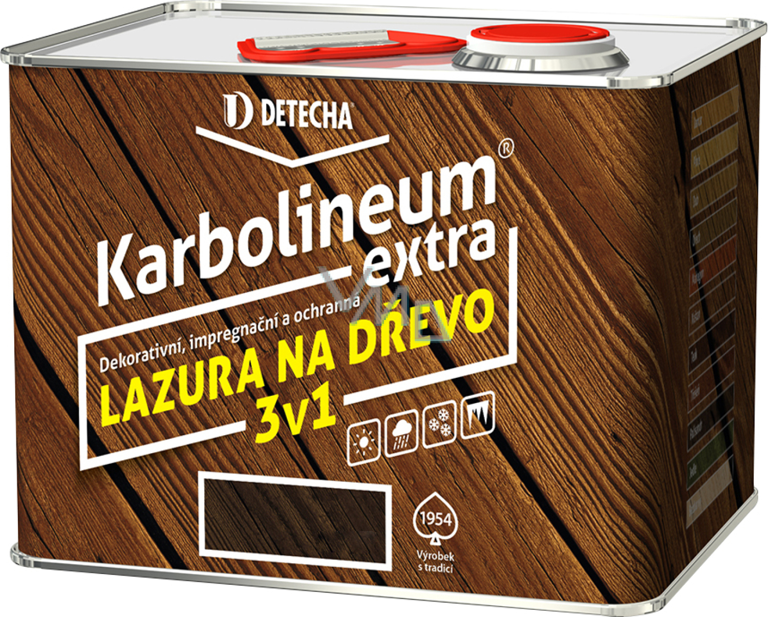 Nowoczesna impregnacja z dekoracyjnymi właściwościami. Działa jak skuteczne głęboko penetrujące impregnat, a jednocześnie jako górna warstwa ochronna w dziesięciu kolorach. Zawiera bardzo drobne przezroczyste pigmenty, które nadają drewnu pożądany kolor i jednocześnie podkreślają jego naturalną teksturę. Wraz z innymi funkcjonalnymi dodatkami skutecznie przeciwdziała wszelkim wpływom atmosferycznym, w tym promieniowaniu UV. Powłoka nie zamyka drewna, pozwala mu regulować wilgotność, nie pęka i nie łuszczy się. Po całkowitym wyschnięciu jest całkowicie bez zapachu. Powłoka jest traktowana substancjami biobójczymi przeciwko atakowi mchem, pleśniami, glonami i grzybami. Bezbarwny kolor nie jest wystarczającą ochroną w eksterierze przed promieniowaniem UV. Używa się go jako impregnatu pod kolorowe odcienie lub jako dodatkową powłokę, która chroni wcześniejsze warstwy i przedłuża ich trwałość.