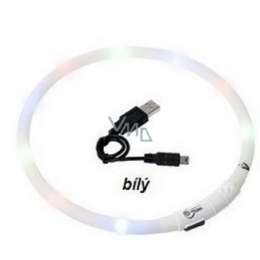 Odolný svítící obojek pro psy - silikonový obal v sobě skrývá LED diody, které mohou nepřetržité svítit nebo blikat. Obojek lze zastřihnutím zkrátit na libovolný obvod krku. Obojek lze zkrátit na délku 20-75 cm.
