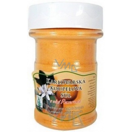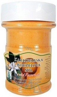 Karlovarská koupelová sůl, práškový přípravek do koupele k přípravě regenerační koupele celého těla. S osvěžující vůní pomeranče. Na celkové osvěžení organismu. Po celodenní námaze, po sportu v rámci denní hygieny.