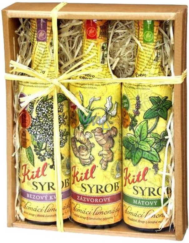 Kitl Syrob Bio Bezový květ sirup 500 ml + Zázvor sirup 500 ml + Mátový sirup pro domácí limonády 500 ml, dárkové balení
