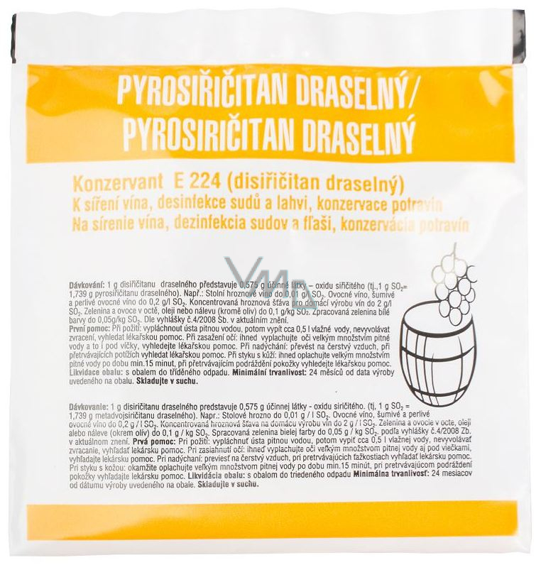 1 g disiřičitanu potasu odpowiada 0,575 g substancji czynnej - dwutlenku siarki (tj. 1 g SO2=1,739 g pyrosiarczanu potasu).