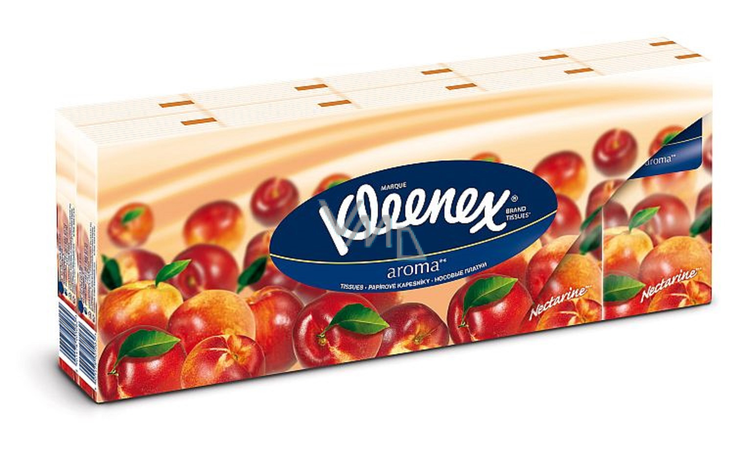 Dopřejte si jedinečnou péči díky Kleenex. Třívrstvé kapesníčky aroma Nektarinka jsou vyrobeny z té nejkvalitnější 100% celulózy, proto vynikají nepřekonatelnou jemností a pevností. Jsou vhodné pro období alergií a chřipek. Kapesníky se vyrábí s parfemací nektarinky v lososové barvě. Logo značky Kleenex je zárukou maximální kvality a zákaznické spokojenosti. Kleenex se o vás postarají s maximální jemností