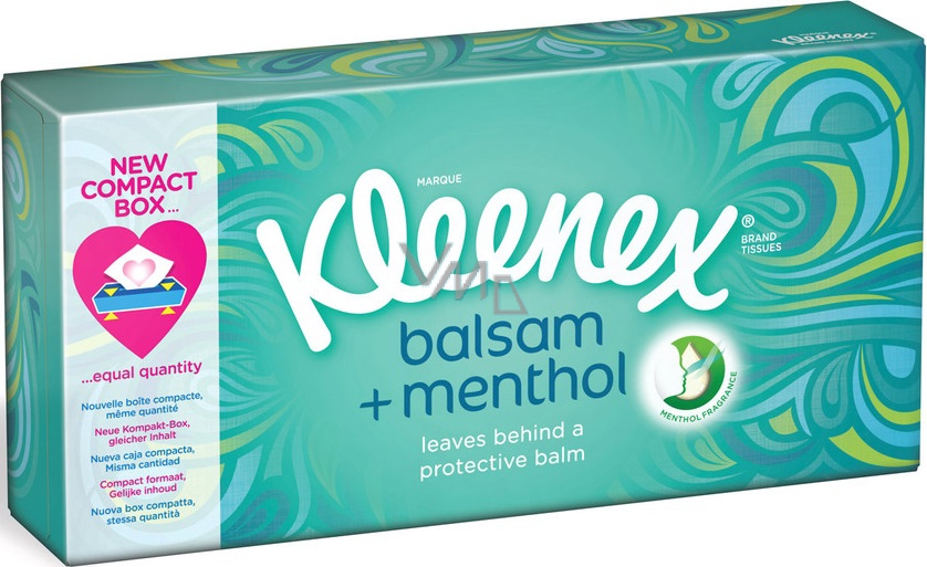 Kleenex Balsam + Menthol hygienické kapesníky s vůní mentolu v krabičce 3 vrstvý 72 kusů
